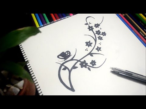 Black & white Butterfly And Flower painting || Simple Flower Designs tutorial - Black And White Clipart Flowers And Butterflies